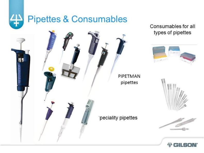 Gilson está dedicado a hacer su vida más fácil, brindando una amplia y confiable gama de soluciones de manejo de líquidos manuales a automatizadas, que incluyen pipetas monocanal, pipetas multicanal, puntas de pipeta, accesorios para pipetas, equipos de preparación de muestras de mesa y servicios a medida.